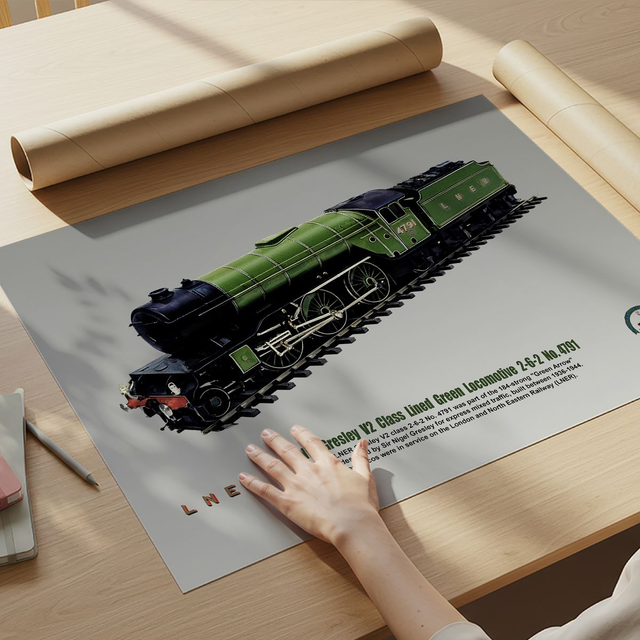 LNER Gresley V2 Class Steam Locomotive Artwork Print Poster Model Railway Art